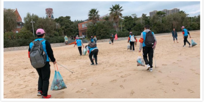 到达厦门市湖里区五缘湾湿地公园后,支部党员联合志愿者进行分组行动,大家拿起手中的工具拾起了海滩上的塑料袋、包装纸、空酒瓶等垃圾,并将垃圾进行集中与分类,投放到指定位置。在本次活动中,大家团结协作、井然有序,营造美丽的厦门一片洁净的海滩,此次志愿公益行动还得到了现场群众的夸奖和赞扬。