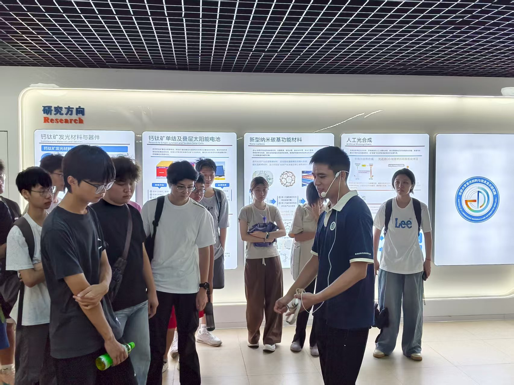 在学院党委的指导下,前沿材料党支部充分发挥战斗堡垒作用,精心策划组织了研究院“开放日”活动。在材料学院支持下,25级材料1班2班与25级应化1班2班的境内外本科生同学于9月15日走进发光材料与信息显示研究院,以党建为引领,搭建起科普交流新平台。