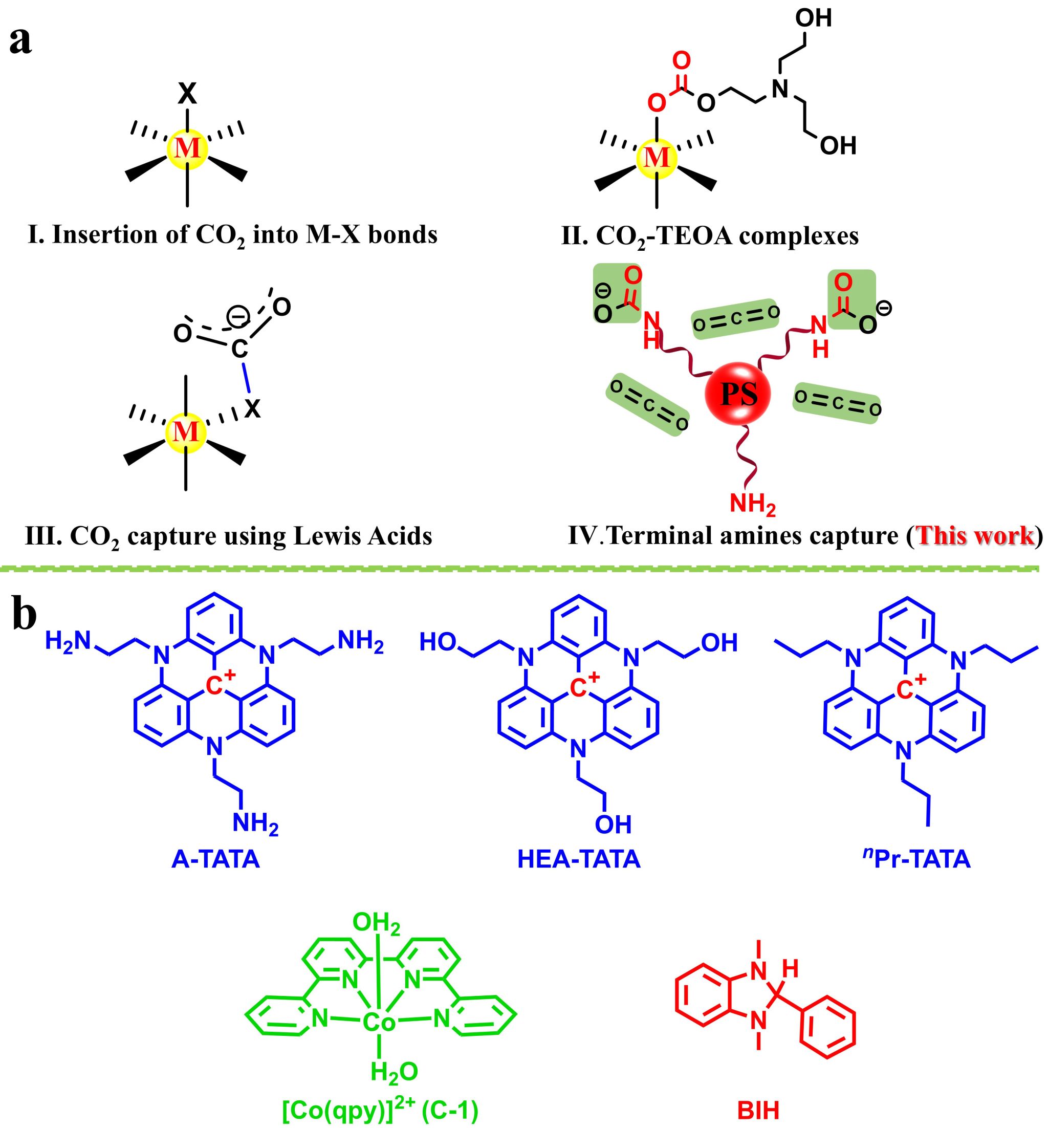 利用太阳能将二氧化碳(CO2)直接转化为高附加化学品,是实现“双碳”目标的关键。本研究开发出一种新型−胺基修饰的三氮杂三角烯有机光敏剂(A-TATA),实现了CO2的高效捕获与光催化还原,并进一步串联转化为高附加值酰胺类化合物,为CO2资源化利用提供了创新解决方案。